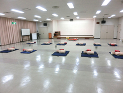 ●救命救急士による指導のもと、心肺蘇生法(呼吸の確認・胸骨圧迫・人口呼吸)の訓練。
