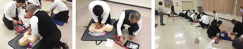 総社消防署にて、救命救急士様を講師にお迎えし、心肺蘇生法・AED使用の訓練を行いました。